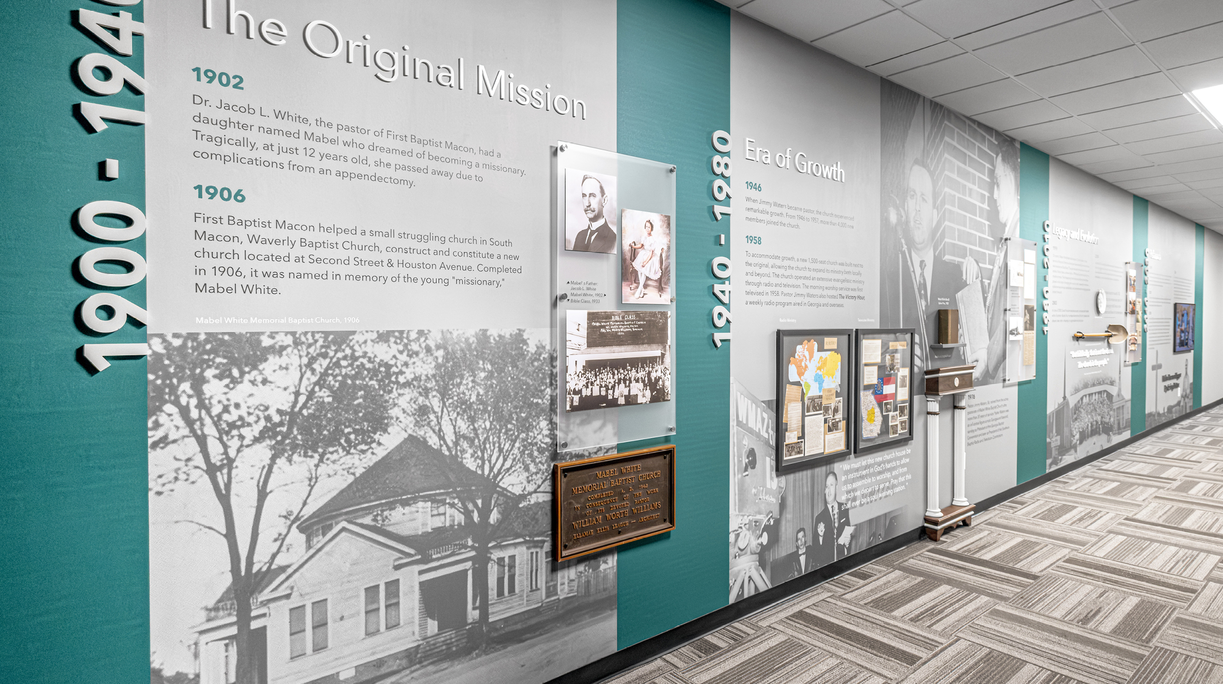 Rock Springs Church is a leading congregation Georgia that aspired to tell the their history in a compelling installation at their Macon Campus. At the end of 2024 and into early 2025, Rock Springs Church merged with Turning Point Church in Macon, formerly known as Mabel White Memorial Baptist Church. As part of this milestone, the church leadership sought not only to expand the Rock Springs campus, but also to honor the rich history of Mabel White Memorial Baptist Church in Macon.